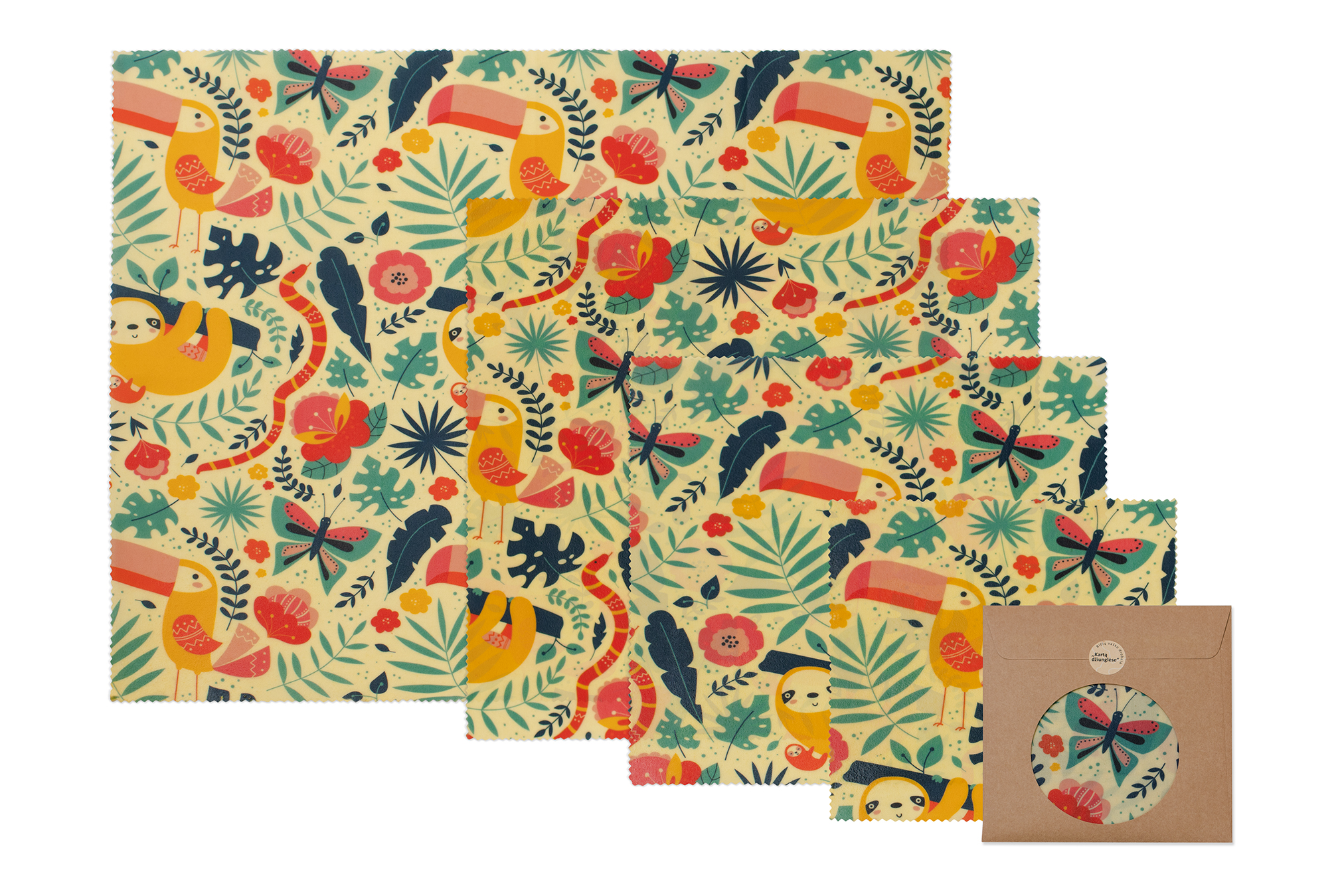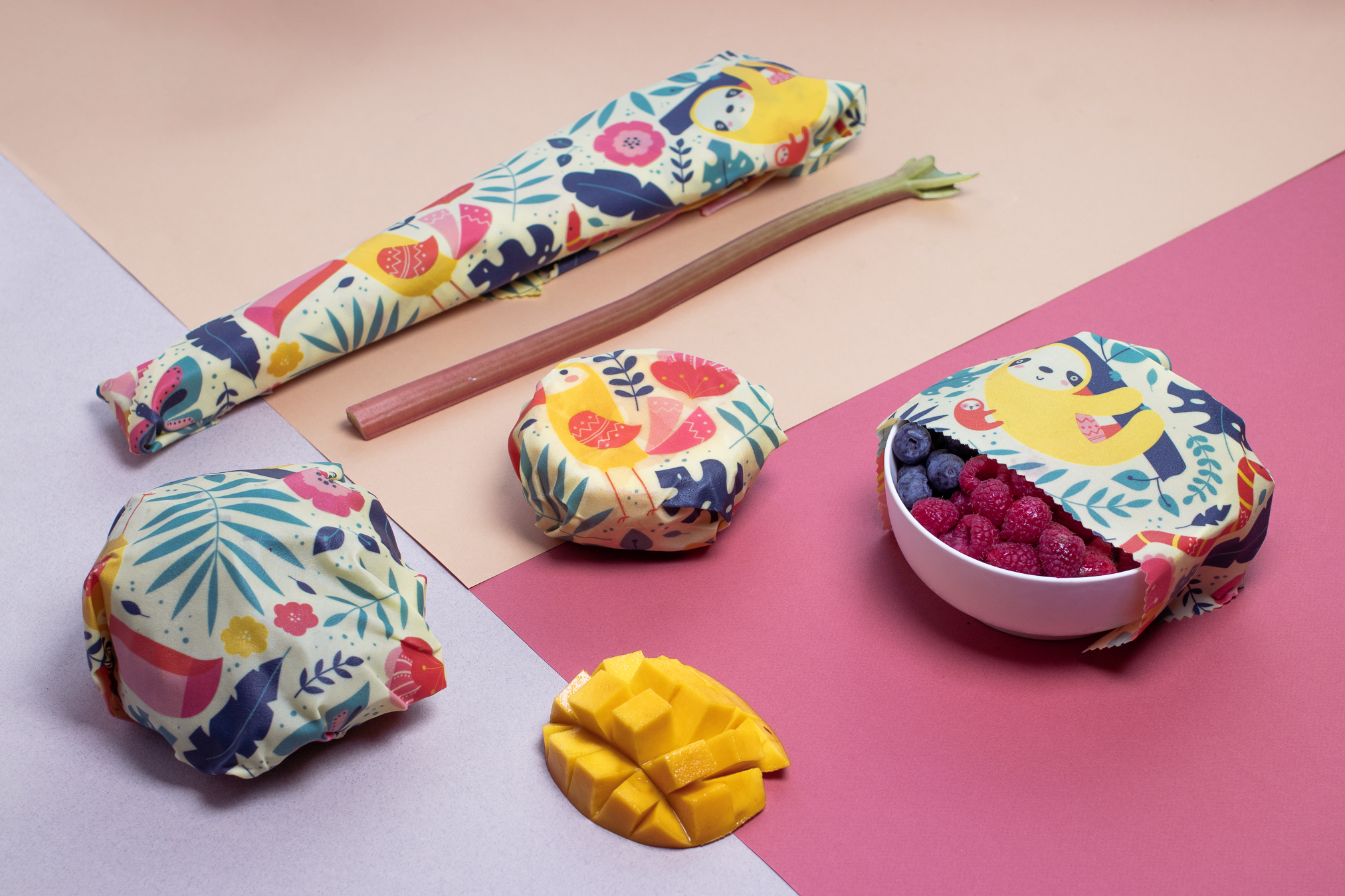 Drobelės yra pagamintos iš sertifikuotos OEKO-TEX medvilnės, bičių vaško, pušies sakų ir simondsijų aliejaus. Bičių vaškas pasižymi antibakterinėmis savybėmis, o tai leidžia produktams ilgiau išlikti šviežiems. Drobelės leidžia produktams jose kvėpuoti, todėl puikiai tinka laikyti įvairius maisto produktus. Bičių vaško drobelėse vyniok gabalėlį sūrio, puselę svogūno, mango ar avokado, dalį kopūsto, moliūgo, cukinijos, agurko ar arbūzo. Įsuk savo mėgstamą kepalą duonos, vyniok sumuštinį, bei apdenk dubenį salotų. Drobelėse vyniok maisto produktus pagal jų dydį.