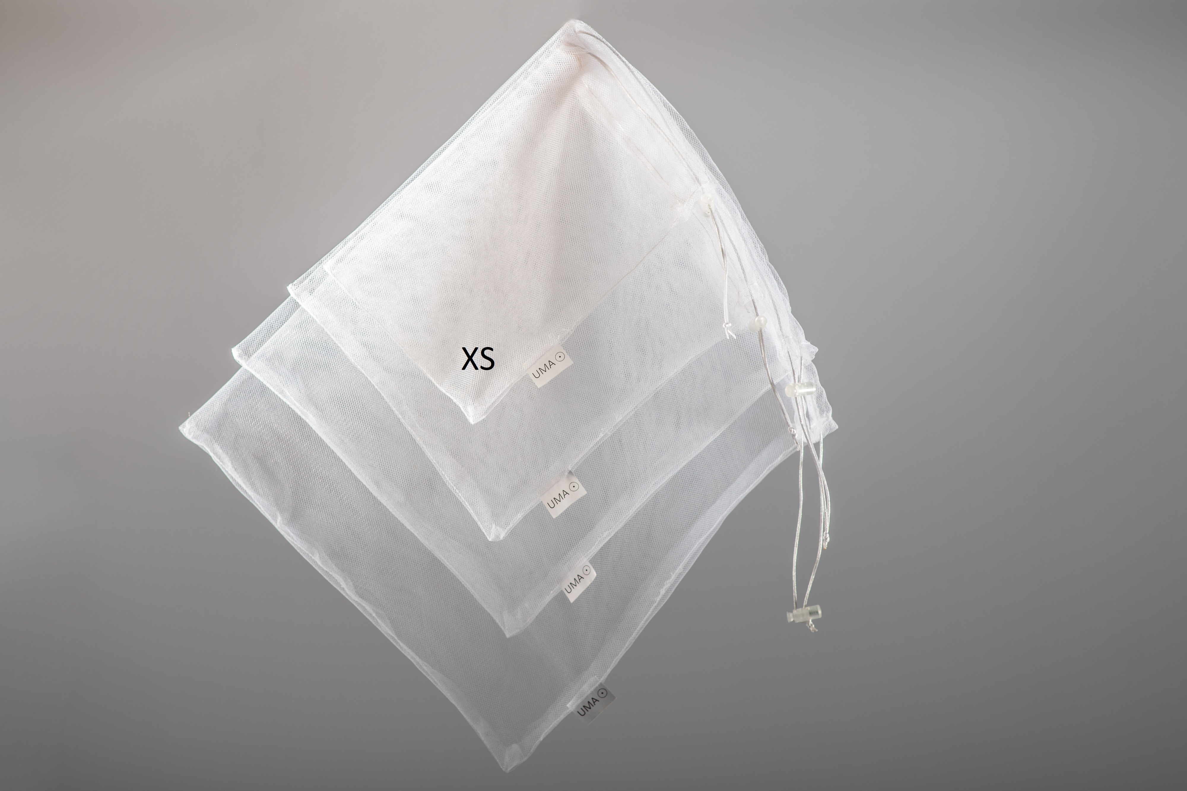 Daugkartinio naudojimo, permatomas XS dydžio maišelis. Maišelis turi fiksatorių, kuris užtraukdamas virvele, neleis produktams išbyrėti. Pagamintas iš permatomos, ypač lengvos, bei tamprios medžiagos. Siekiant kuo didesnės kokybės, maišelių krašteliai susiūti du kartus. Uma maišiukus galima skalbti rankomis arba skalbimo mašina iki 40° C temperatūros.